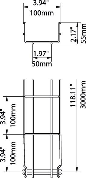 CO2 Footprint (GWP) Cradle-to-Gate 3,6441 kg CO2e / 1 Meter Colour stainless steel Connector version Integrated connector Dimension 55x100x3000 Dimension B 100 mm Dimension H 58 mm Fire protection Maintenance of electrical function of cable-specific support structure Height 55 mm Height 2,17 in Integrated partition Without Length 3000 mm Load test type according to IEC 61537 Type II Maintain electrical functions yes Material Stainless steel 1.4401 Profile shape U-shaped Rustproof steel, pickled yes Screwless connector yes Support spacing 1.0 m 0,35 kN/m Support spacing 1.5 m 0,2 kN/m Support spacing 2.0 m 0,1 kN/m Support spacing 2.5 m 0,1 kN/m Surface Bright, treated Type of connector, cable support system Click fastening Usable cross-section 4000 mm² Usable cross-section 40 cm² Wide-span version no Width 100 mm Width 3,94 in Wire diameter 3,9 mm Technical data