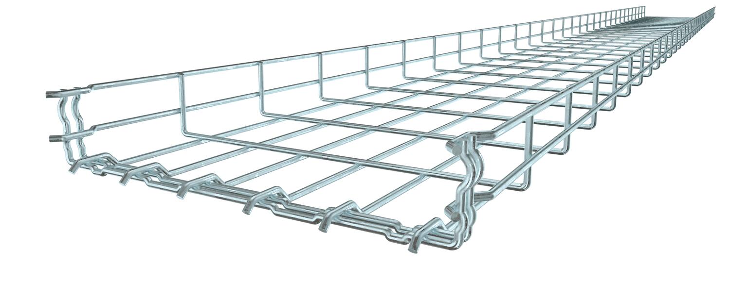 No additional connection components are required for the mesh cable tray, it is simply interlocked. The grid width is 50 x 100 mm (exception: GRM 55/50 = 20 x 100 mm).