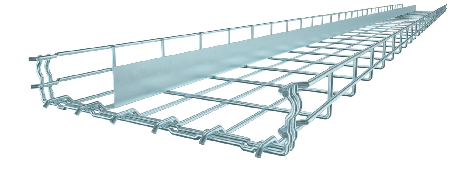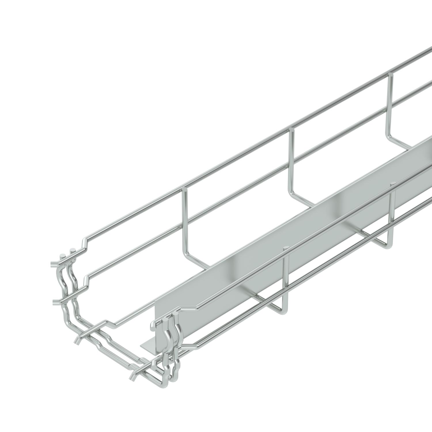 Product descriptionMesh cable tray with shaped connector and welded barrier strips of side height 55 mm.