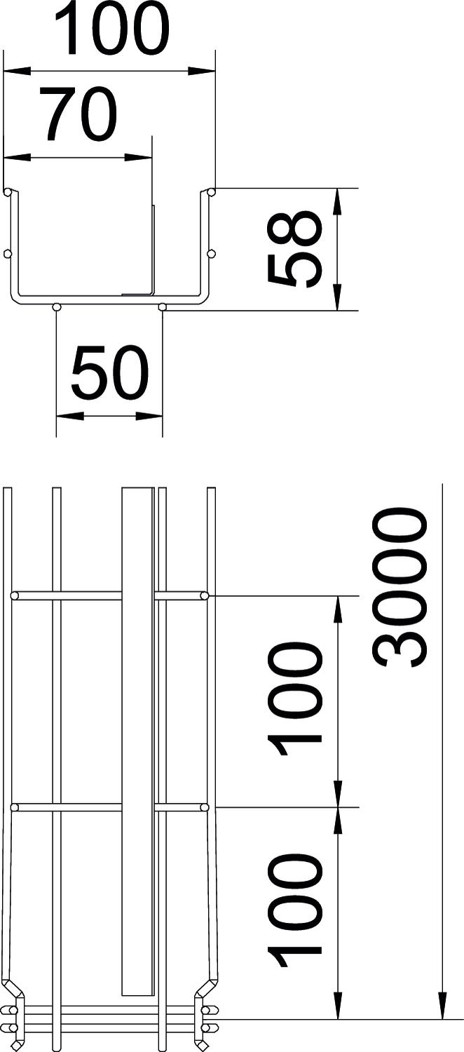 CO2 Footprint (GWP) Cradle-to-Gate 2,1772 kg CO2e / 1 Meter Colour zinc Connector version Integrated connector Dimension 55x100x3000 Dimension A 59,5 mm Dimension B 100 mm Dimension H 58 mm Height 2,17 in Height 55 mm Integrated partition One Length 3000 mm Load test type according to IEC 61537 Type II Maintain electrical functions no Material Steel Profile shape U-shaped Rustproof steel, pickled no Screwless connector yes Support spacing 1.0 m 0,5 kN/m Support spacing 1.5 m 0,5 kN/m Support spacing 2.0 m 0,25 kN/m Surface Electrogalvanized Type of connector, cable support system Click fastening Usable cross-section 40 cm² Usable cross-section 4000 mm² Wide-span version no Width 3,94 in Width 100 mm Wire diameter 3,9 mm Technical data