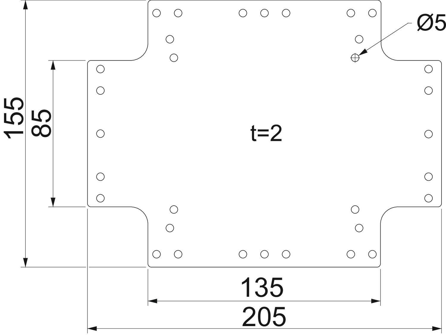 Product descriptionThis mounting and fastening plate gives the options for variable fixing of external components in the junction box. It consists of strip-galvanised sheet steel of a material thickness of 2 mm.