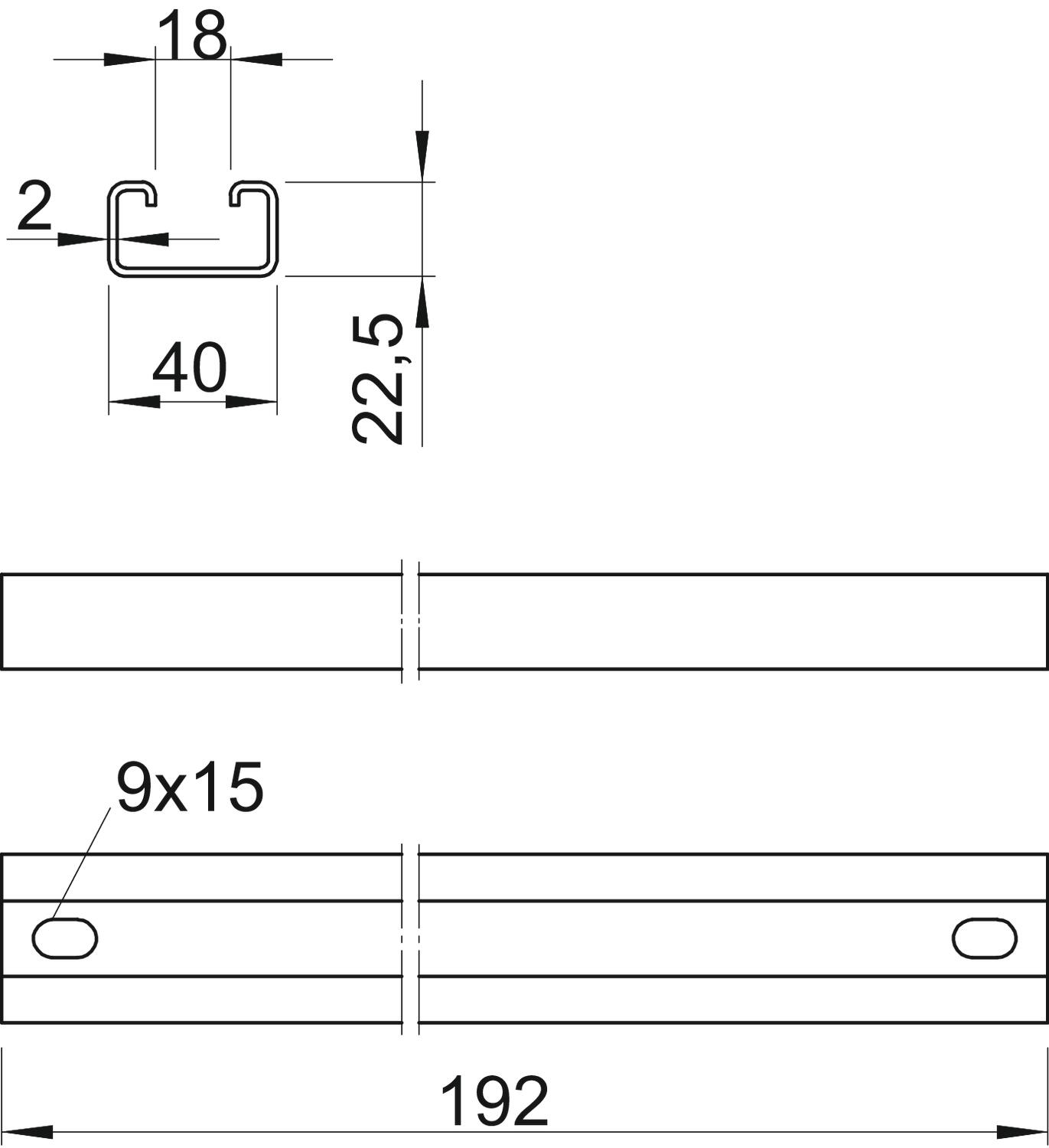 CO2 Footprint (GWP) Cradle-to-Gate 0,6356 kg CO2e / 1 Piece Dimension 192x40x22,5 Height 22,5 mm lampDimension WxH 40x22,5 mm Length 192 mm Material Steel Material thickness 2 mm Profile shape C profile Slot width 18 mm Surface Hot-dip galvanised Type of perforation Perforated back Version for Single profile Width 40 mm - All types