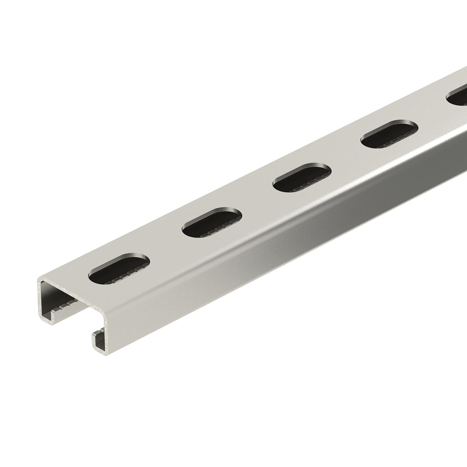 Product descriptionHeavy-duty C profile rail for individual installation of support constructions, e.g. for cable trays or as a panel for switchgear cabinets. Can also be used for cable routing, in conjunction with clamp clips with a U foot.