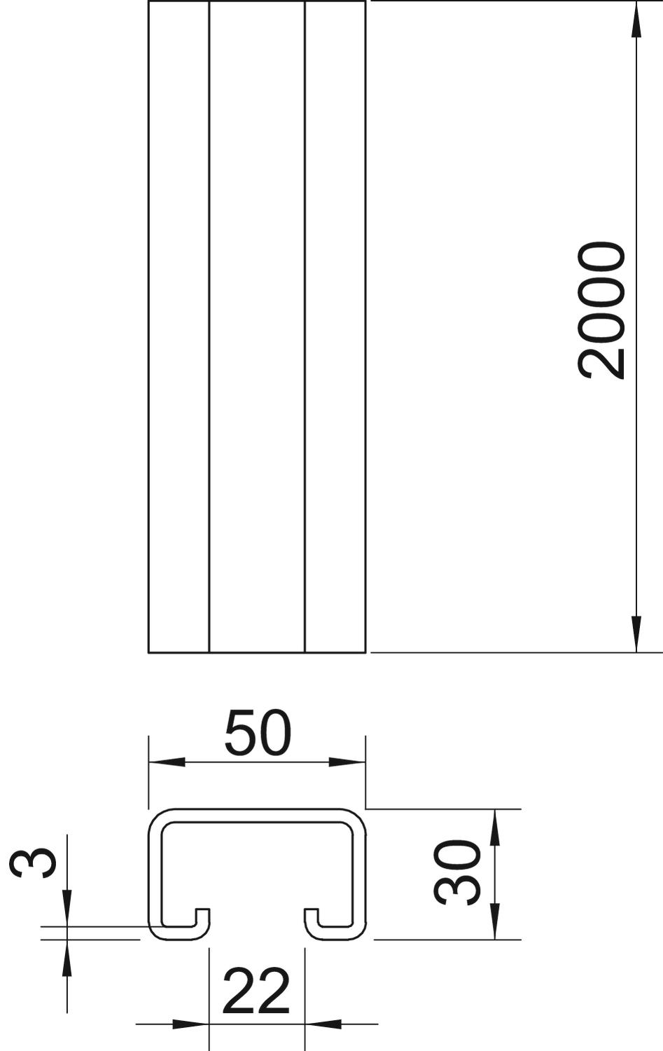 Breakable no CO2 Footprint (GWP) Cradle-to-Gate 6,1135 kg CO2e / 1 Meter Dimension 2000x50x30 Dimension L 2000 mm Height 30 mm Length 2000 mm Maintain electrical functions no Material Steel Material thickness 3 mm Profile shape C profile Slot width 22 mm Static value A 1,74 cm² Static value ly 1,19 cm⁴ Static value lz 4,46 cm⁴ Static value Wy 1,05 cm³ Static value Wz 2,23 cm³ Surface Hot-dip galvanised Type of perforation Without Version for Single profile Width 50 mm With perforation no With toothing no - All types