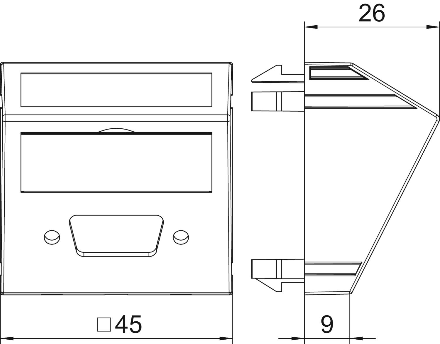 Product descriptionMultimedia support for a VGA/D-Sub9 plug connector, slanting cable outlet, with labelling panel, without plug connector. Support plate with locking fastening, suitable for horizontal and vertical installation in the system environment.