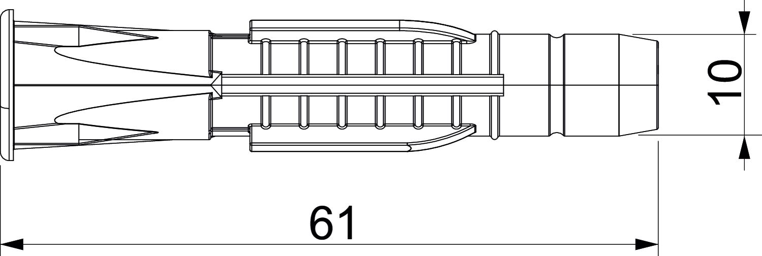 Colour Light grey Diameter 10 mm Dimension 10x61 Dimension D 10 mm Dimension L 61 mm Drill hole diameter, min. 10 mm Material Polyamide Suitable for fastening with cable ties no Suitable for hexagonal wood screw yes Version for Universal anchor With bolts no Wood screws 7-8 - All types