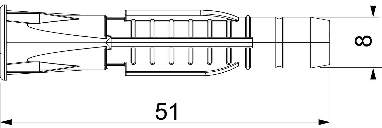 Colour Light grey Diameter 8 mm Dimension 8x51 Dimension D 8 mm Dimension L 51 mm Drill hole diameter, min. 8 mm Material Polyamide Suitable for fastening with cable ties no Suitable for hexagonal wood screw yes Version for Universal anchor With bolts no Wood screws 5-6 - All types