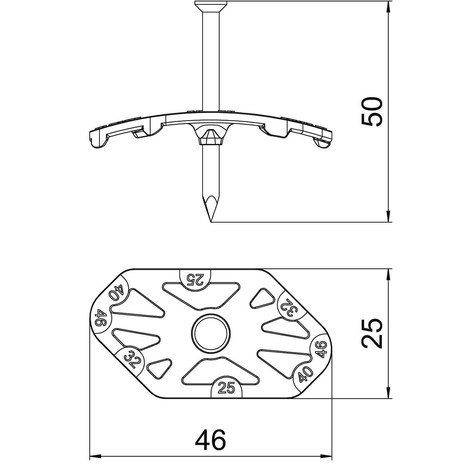 Product descriptionNail-Fix 2.0 nail clip with pre-mounted galvanised steel nail, to fix cables in masonry slits of 25–46 mm and on masonry.