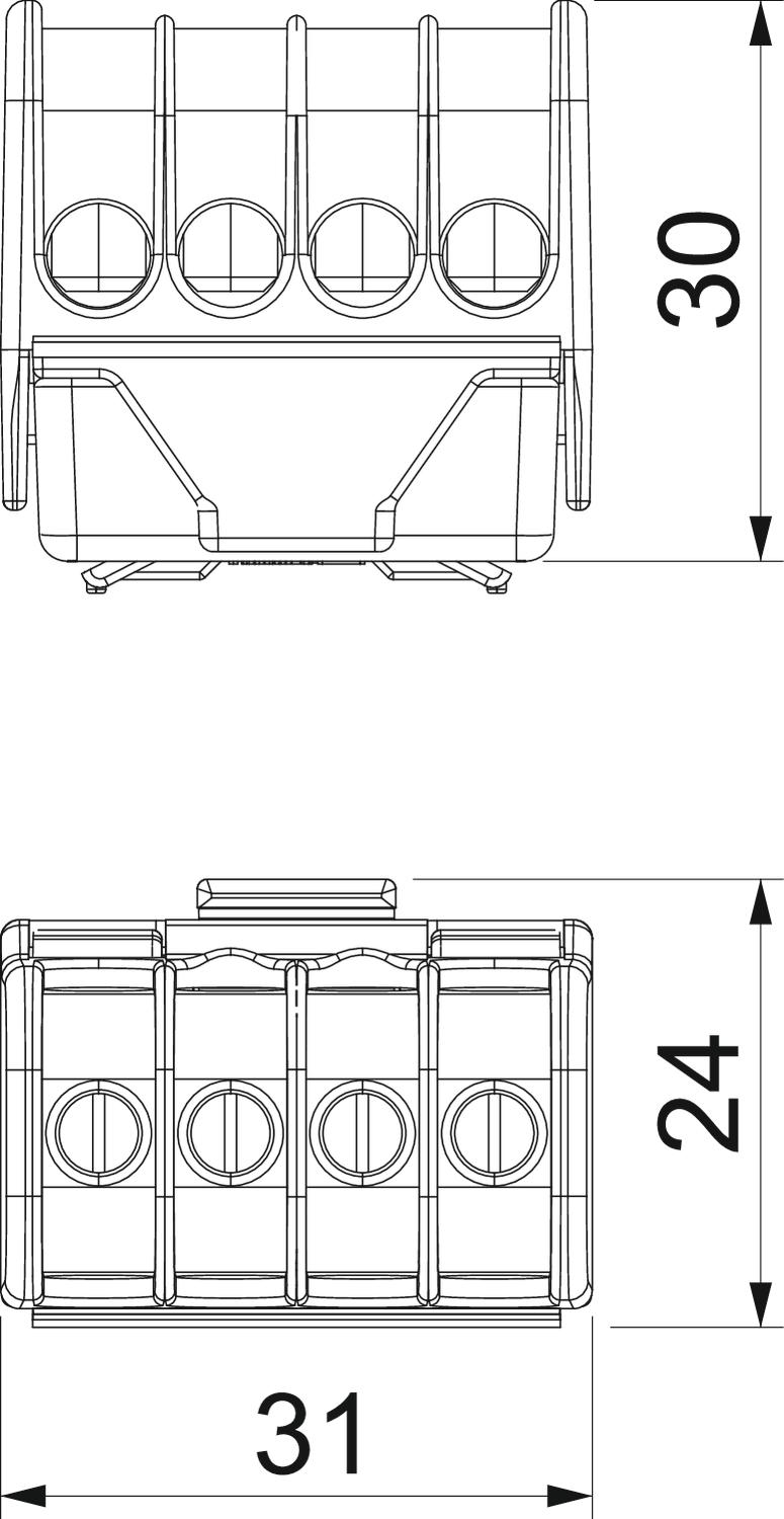Product descriptionNeutral conductor connection terminal, brass, steel screws, electrogalvanised and transparently passivated, nominal cross-section 6 ÷ 16 mm², nominal voltage 400 V, 1-pole, with terminal sockets, max. connectable conductors per terminal 4 x 16 mm², 4 x 10 mm², 8 x 6 mm² or 12 x 4 mm².