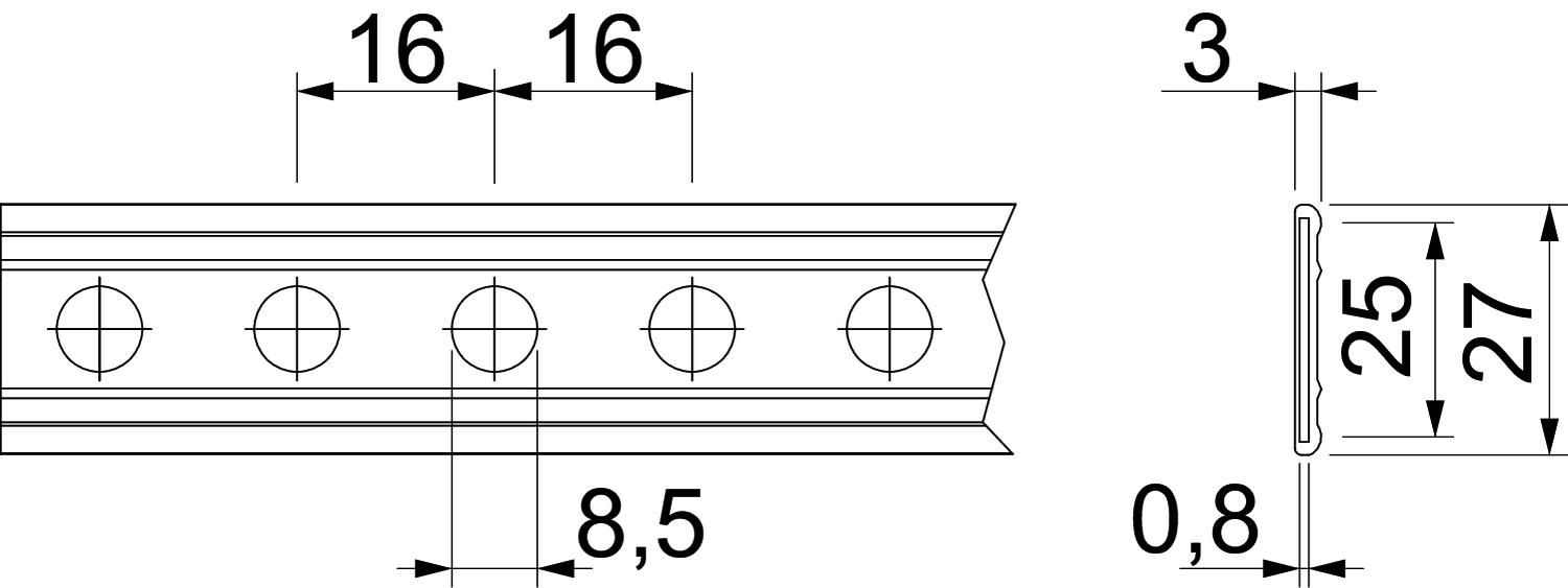 Colour Black Dimension 27x2mm Dimension 27 x 3 Dimension A 16 mm Dimension b 25 mm Dimension b1 27 mm Dimension d 8,5 mm Dimension t 0,8 mm Dimension t1 (mm) 3 Halogen-free yes Hole diameter 8,5 mm In the holder yes Material Steel per rolls 10 Perforation Round Size III Surface Strip galvanized / plastic coated Version for Perforated - All types