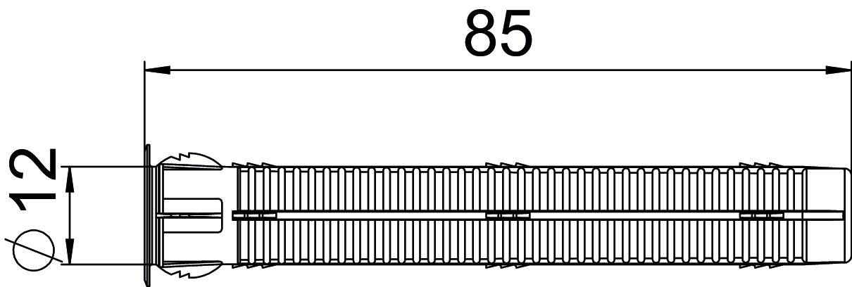 Colour Beige; RAL 1001 Dimension 85 x 17 Dimension D 12 mm Dimension L 85 mm Drill hole depth 95 mm Drill hole diameter, max. 12 mm Length 85 mm Material Polypropylene/polyethylene Self-tapping no Version for For pushing in With flange yes - All types