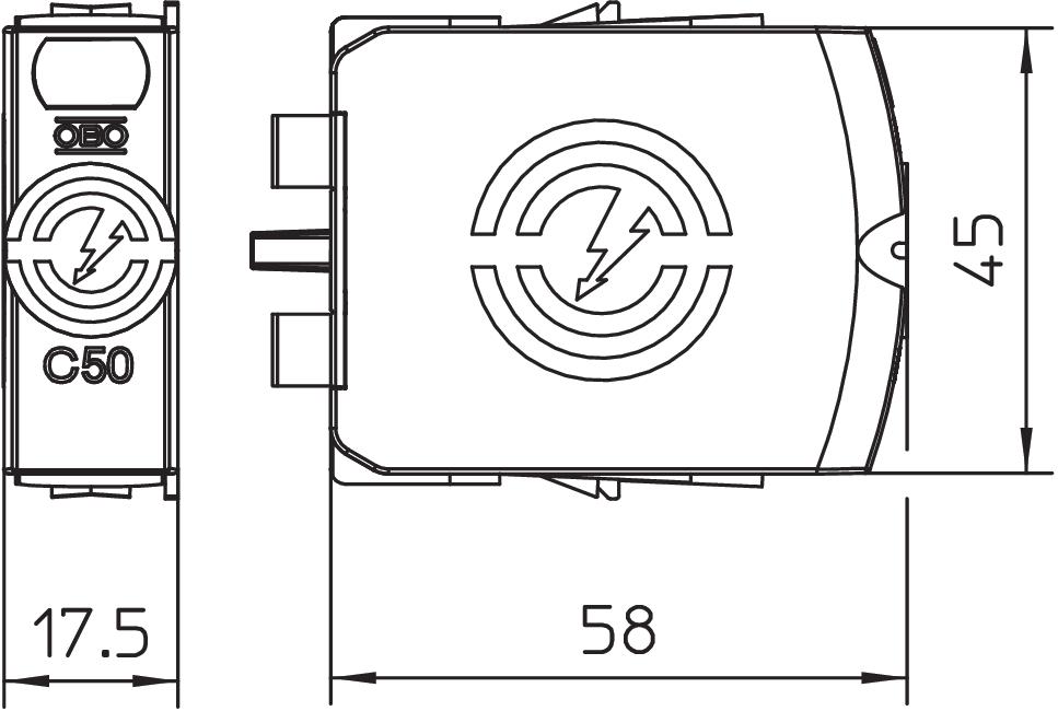 • Lightning current discharge capacity up to 50 kA (10/350) in total