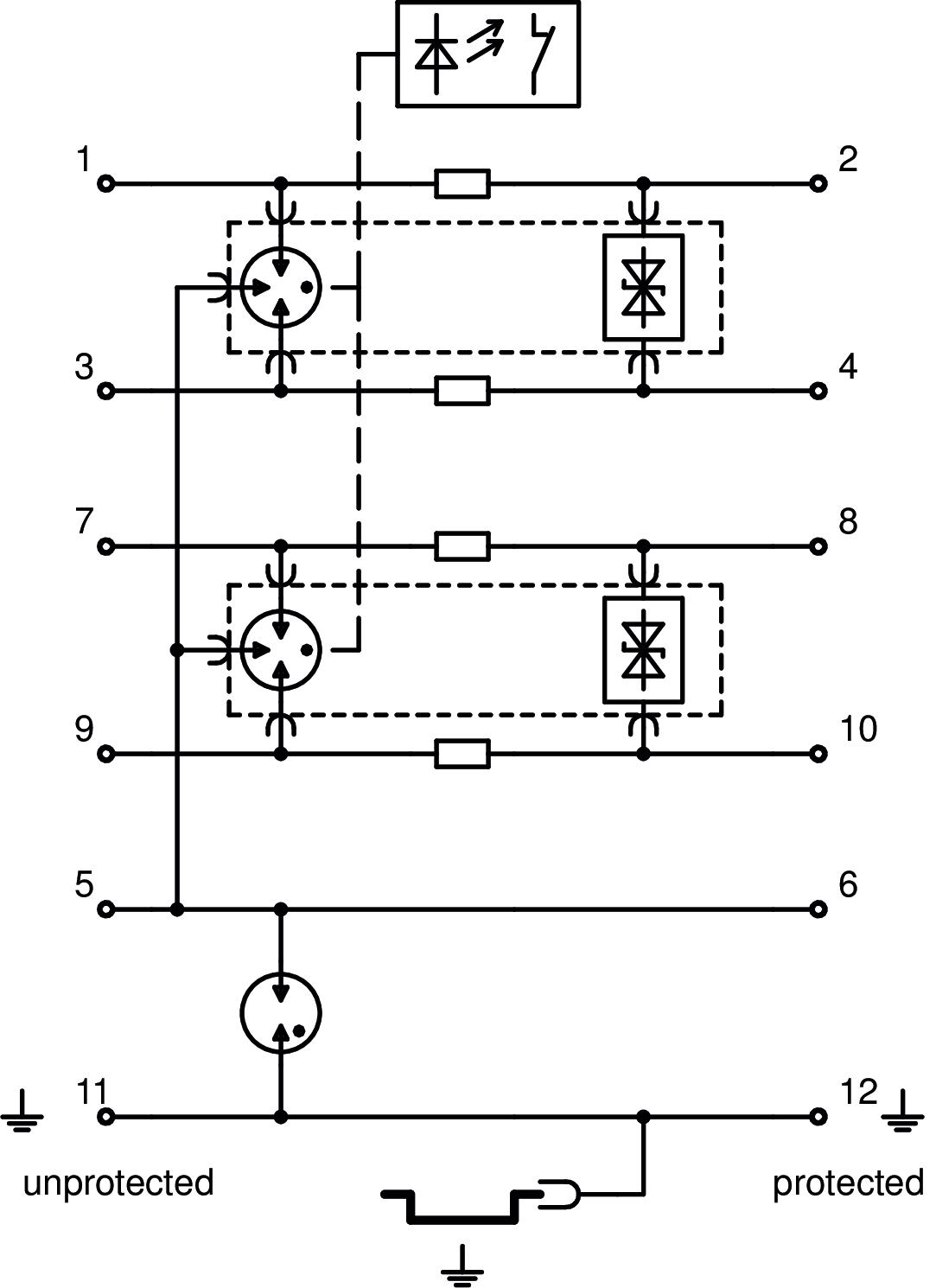 Capacity (wire-earth) ≤30 pF Capacity (wire-wire) ≤30 pF CO2 Footprint (GWP) Cradle-to-Gate 0,7889 kg CO2e / 1 Piece Connection cross-section, flexible, max. 1,5 mm² Connection cross-section, flexible, min. 0,14 mm² Connection cross-section, multi-wire, max. 2,5 mm² Connection cross-section, multi-wire, min. 0,14 mm² Connection cross-section, rigid, max. 2,5 mm² Connection cross-section, rigid, min. 0,14 mm² Cut-off frequency 100 MHz Dimension 48V Earthing via: Connection cable / DIN rail Height 95 mm Impulse durability wire-earth 10 kV / 5 kA Impulse durability wire-wire 10 kV / 5 kA Insertion loss ≤3 dB Kategorie Type 1+2 / D1+C2 Length 75 mm Lengthwise resistance 1.2 ± 5% Lightning impulse current 2,5 kA Lightning protection zone LPZ 0→2 Maximum continuous voltage AC 37 V Maximum continuous voltage DC 52 V Mounting of input / output Screw terminals Nominal discharge current (8/20 µs) 10 kA Nominal load current AC 0,425 A Nominal load current DC 0,6 A Number of poles 4 Permitted temperature range, max. 80 °C Permitted temperature range, min. -40 °C Plug-in system Terminal Protection level wire-earth 1600 V Protection level wire-wire 170 V Protection level, shield-earth (S-PE) 1300 V Protection rating IP20 Screening Indirect Series resistance per wire 1,2 Ω ± 5% Shielding connection available yes Signalling on device None SPD to EN 61643-11 Type 1+2 SPD to IEC 61643-1 Class I+II SPD to IEC 61643-21 Class I+II / D1+C2 Testing standard IEC 61643-21 Total discharge current (10/350) 2,5 kA Total discharge current (8/20) 20 kA Total impulse durability into C2 (8/20) 20 kA Version for 2x2-pole Width 17,5 mm - All types