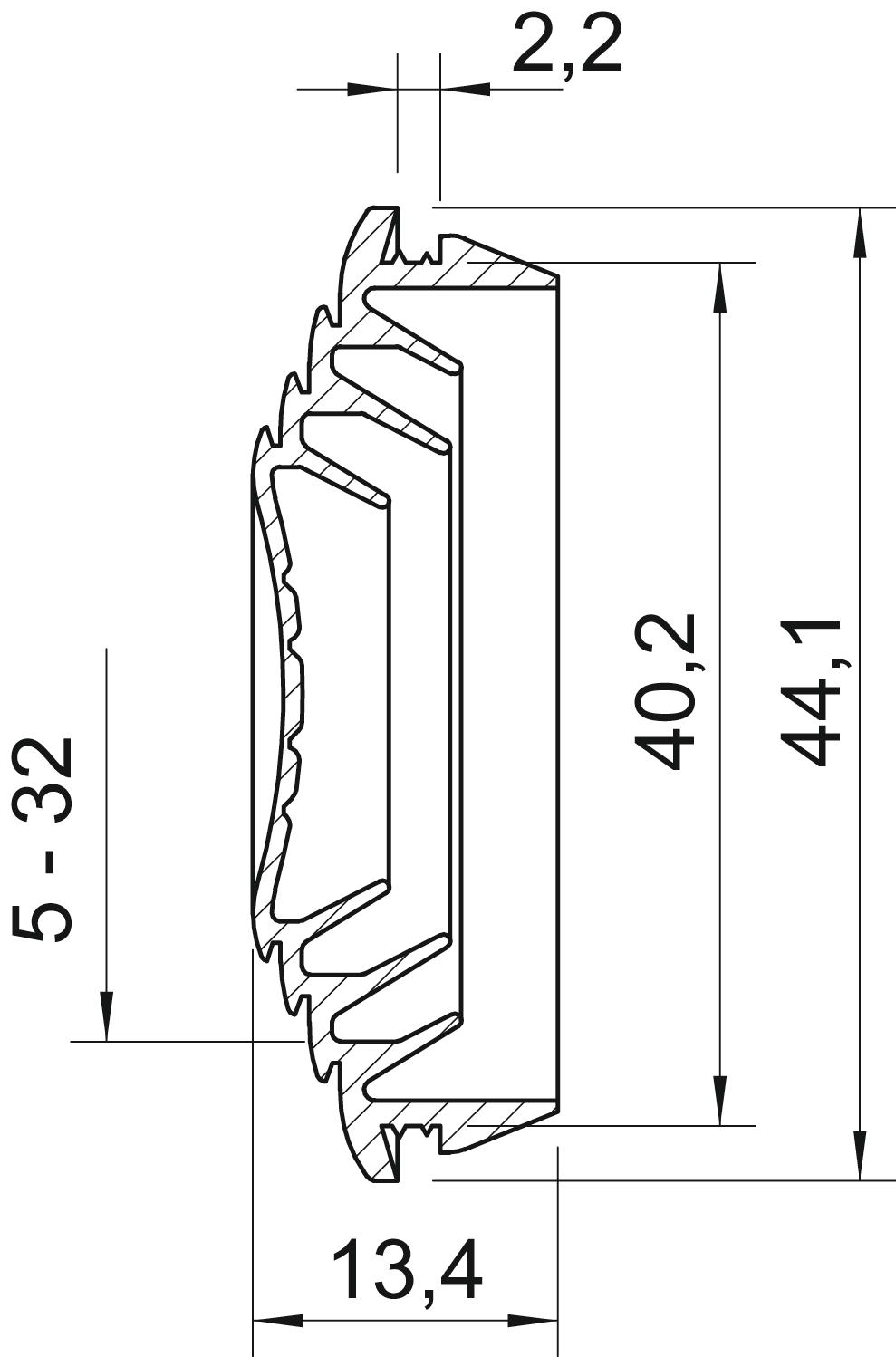 CO2 Footprint (GWP) Cradle-to-Gate 0,0305 kg CO2e / 1 Piece Colour Light grey; RAL 7035 Dimension Ø40/5-32 Dimension A 2,2 mm Dimension D1 44,1 mm Dimension D2 40,2 mm Dimension D3 5 mm Dimension D4 14 mm Dimension D5 15 mm Dimension L 13,4 mm for diameter, max. 32 mm for diameter, min. 5 mm for wall thickness, max. 2,2 for wall thickness, min. 2,2 Halogen-free yes Material Thermoplastic elastomer Nominal diameter 40 mm Protection rating IP55 Size M40 Version for Cuttable - All types