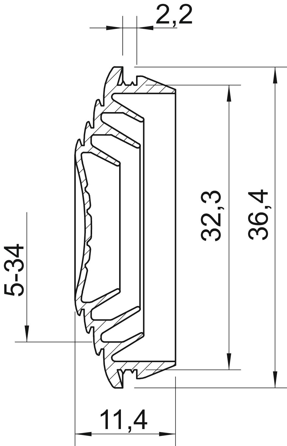 CO2 Footprint (GWP) Cradle-to-Gate 0,015 kg CO2e / 1 Piece Colour Pastel orange; RAL 2003 Dimension M32 Dimension A 2,2 mm Dimension D1 36,4 mm Dimension D2 32,3 mm Dimension D3 5 mm Dimension D4 10 mm Dimension D5 15 mm Dimension L 11,4 mm for diameter, max. 27 mm for wall thickness, min. 2,2 Halogen-free no Material Thermoplastic elastomer Nominal diameter 32 mm Size M32 Version for Cuttable - All types