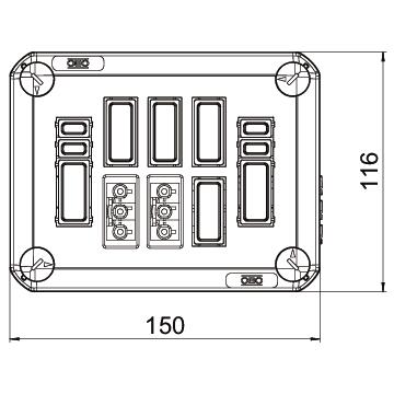 Pluggable cover to close junction boxes, equipped with 2 to 6 Wieland GST18 connector systems, prewired with lever plug-in connector With quick lock in cover, sealable. Halogen-free material, UV-resistant Flame-resistant to DIN EN 60695/2/11, test temperature 650 °C. Impact resistance IK07 at room temperature. Protection rating IP30