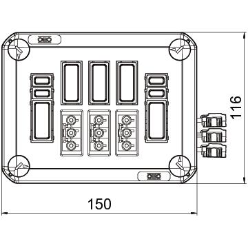 Product descriptionPluggable cover for the closing of junction boxes, equipped with 3 Wieland GST18 plug systems, prewired with lever plug-in connector With quick lock in cover, sealable. Halogen-free material, UV-resistant Flame-resistant to DIN EN 60695/2/11, test temperature 650 °C. Impact resistance IK07 at room temperature. Protection class IP30.