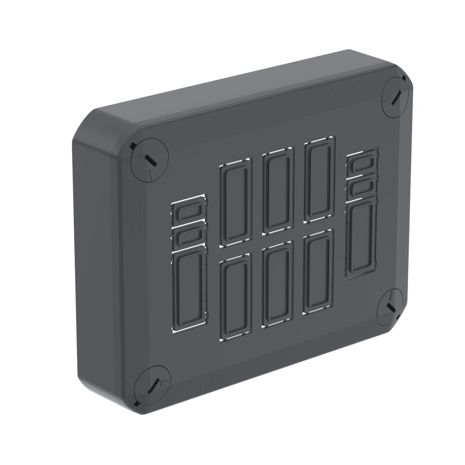 Product descriptionPluggable cover for the closing of junction boxes, equipped with break-out openings for multiple-pole systems or DATA systems based on Keystone. With quick lock in cover, sealable. Halogen-free material, UV-resistant Flame-resistant to DIN EN 60695/2/11, test temperature 650 °C. Impact resistance IK07 at room temperature. Protection rating IP30