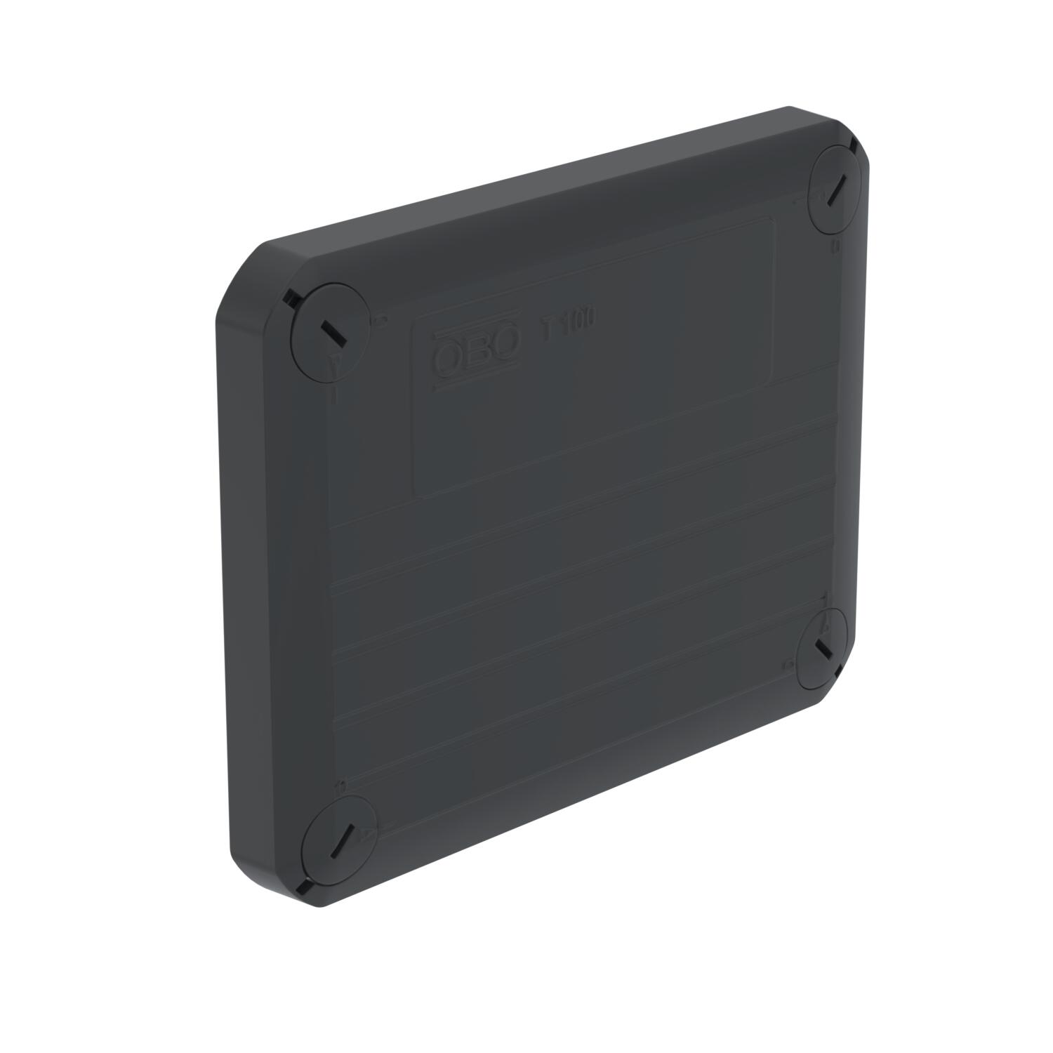 Colour Graphite black; RAL 9011 Dimension 150x116x22 Fastening type Screw fastening Height 22 mm Length 150 mm Material Polypropylene Protection rating IP66 Shape Rectangular Version, concealed and cavity wall cover Blanking lid Width 116 mm With connection cable no - All types