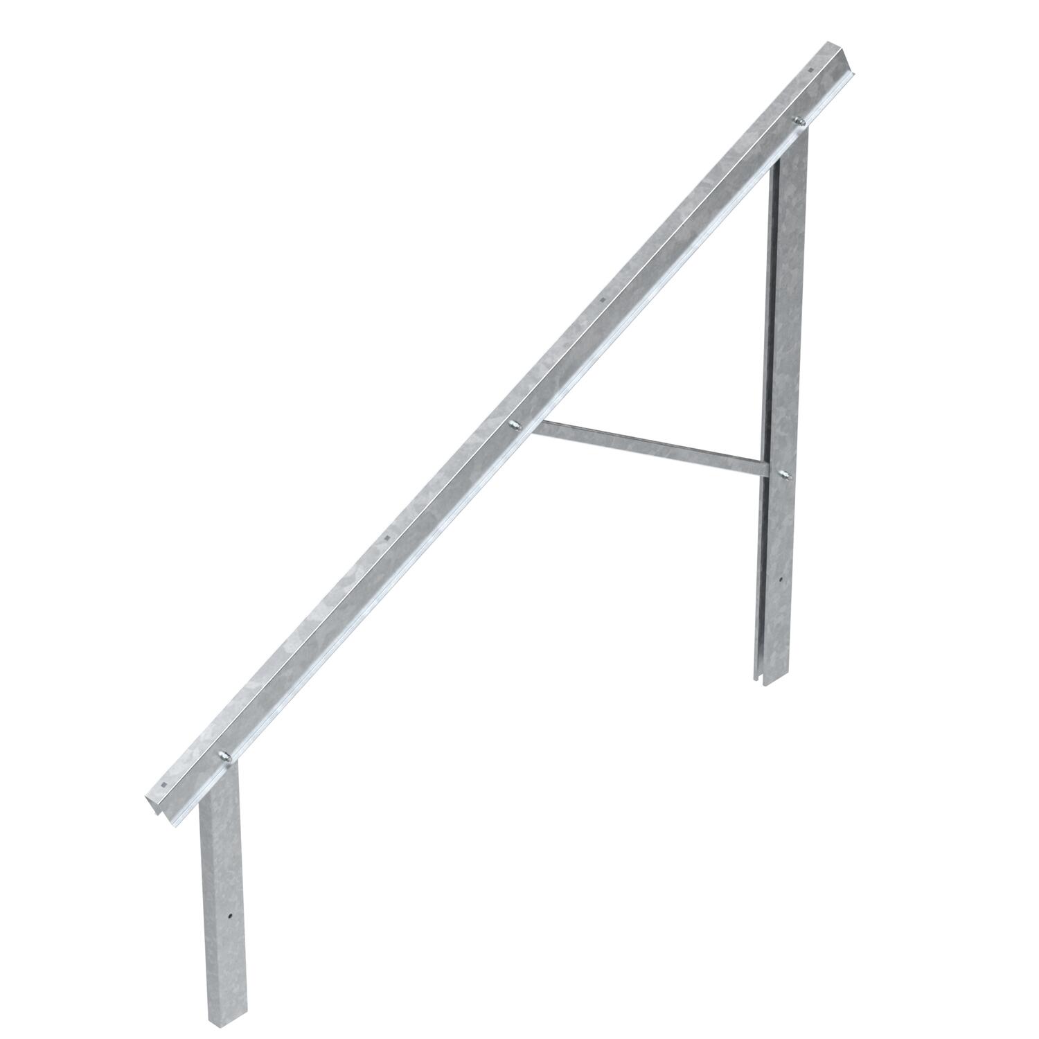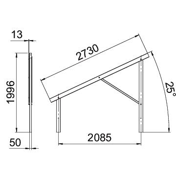 Adjustable no Alignment Vertical Anchoring free-standing Angle of inclination, max. 25 ° Angle of inclination, min. 25 ° Angle α 25 Cable duct optional yes Cable duct, integrated no CO2 Footprint (GWP) Cradle-to-Gate 70,6337 kg CO2e / 1 Piece Colour zinc Dimension 2517x91x1996 Dimension H 2 mm Dimension L 2,52 mm Dimension l 2,08 mm Height 1996 mm Length 2517 mm Material Steel Module height max. 50 mm Module height min. 20 mm Module length max. 1850 mm Module length min. 1600 mm Module width max. 1310 mm Module width min. 990 mm Mounting type photovoltaic mounting systems Floor Penetration of roof necessary no Suitable for roof material Other Surface Hot-dip galvanised Width 91 mm - All types