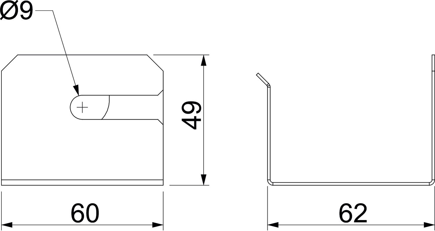 Accessories yes CO2 Footprint (GWP) Cradle-to-Gate 0,2223 kg CO2e / 1 Piece Colour zinc Dimension 62x60x49 Dimension B 60 mm Dimension H 49 mm Dimension t 62 mm Fastening type Screw-on Material Steel Spare part no Surface Strip galvanized Type of accessory Miscellaneous - All types