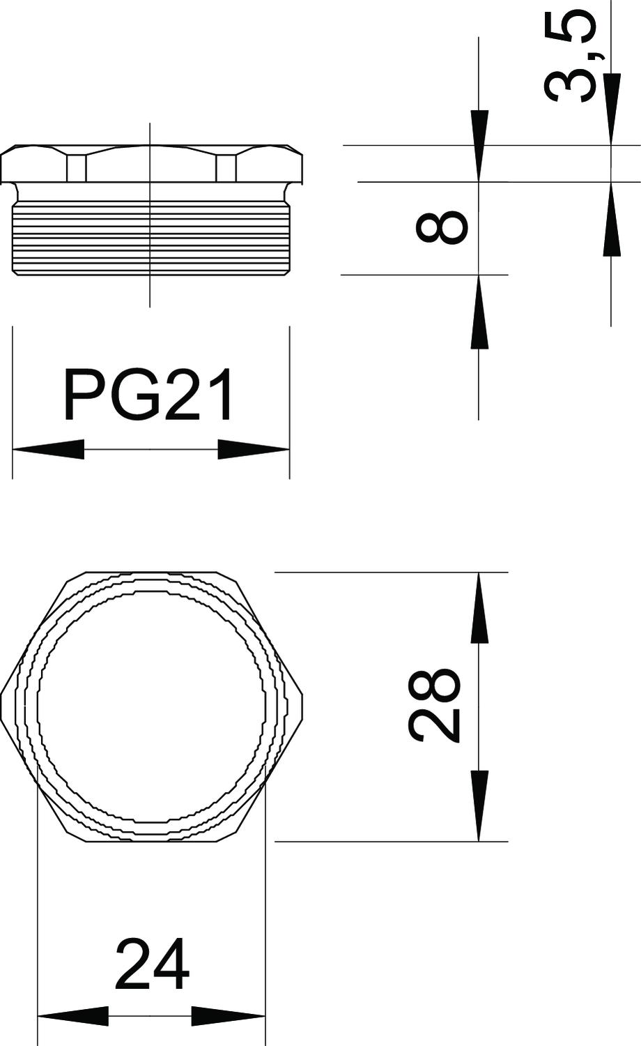 CO2 Footprint (GWP) Cradle-to-Gate 0,0386 kg CO2e / 1 Piece Dimension PG21 Dimension D 24 mm Dimension E 31,2 mm Dimension L1 8 mm Dimension L2 3,5 mm Fibre-glass reinforced no Halogen-free no Impact-resistant no Material Brass Nominal thread size 21 Strain relief option no Surface Nickel-plated Thread increase 1,59 mm Thread length 8 mm Thread type PG WAF 28 - All types