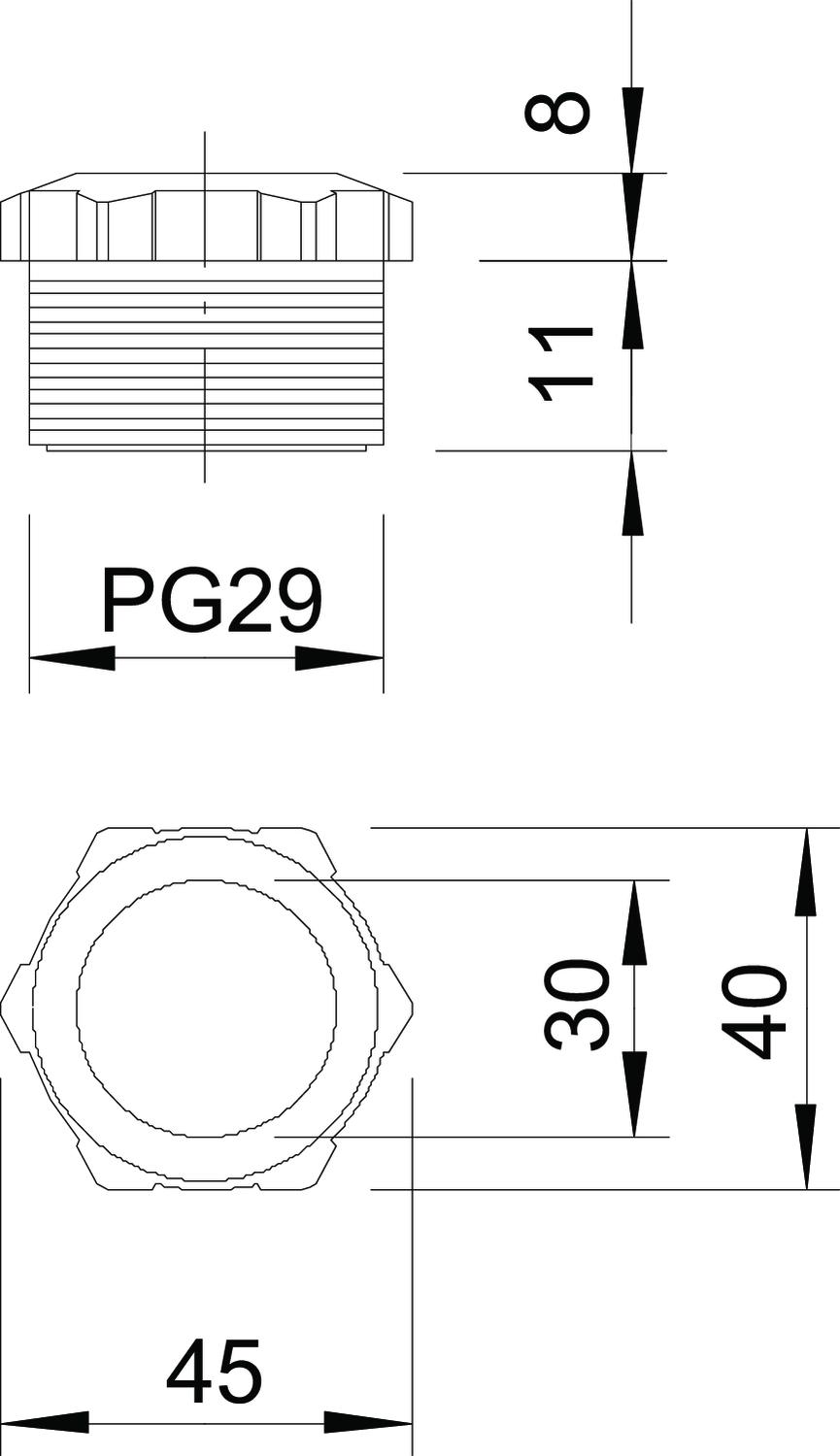CO2 Footprint (GWP) Cradle-to-Gate 0,0466 kg CO2e / 1 Piece Colour Light grey; RAL 7035 Dimension PG29 Dimension D 30 mm Dimension E 45 mm Dimension L1 18 mm Dimension L2 8 mm Fibre-glass reinforced no Halogen-free yes Impact-resistant yes Material Polystyrene Nominal thread size 29 Strain relief option no Thread increase 1,59 mm Thread type PG WAF 40 - All types