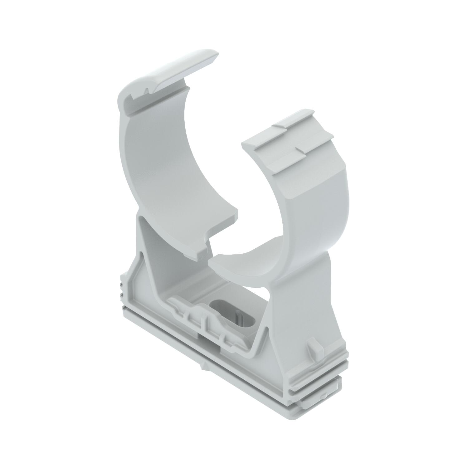 Product descriptionHighly stressable clip for accepting plastic or metal electrical and sanitary pipes as well as the electrical installation pipe Quick pipe. Universal fastening options on walls, ceilings and steel constructions, both indoors and outdoors. Flexible clamping range of several millimetres. Toolless pipe mounting. Connectable to each other to Ø 32 mm, also with the OBO Quick or Multi Quick clip. For variable distances and clip quantity mountable on a profile rail.