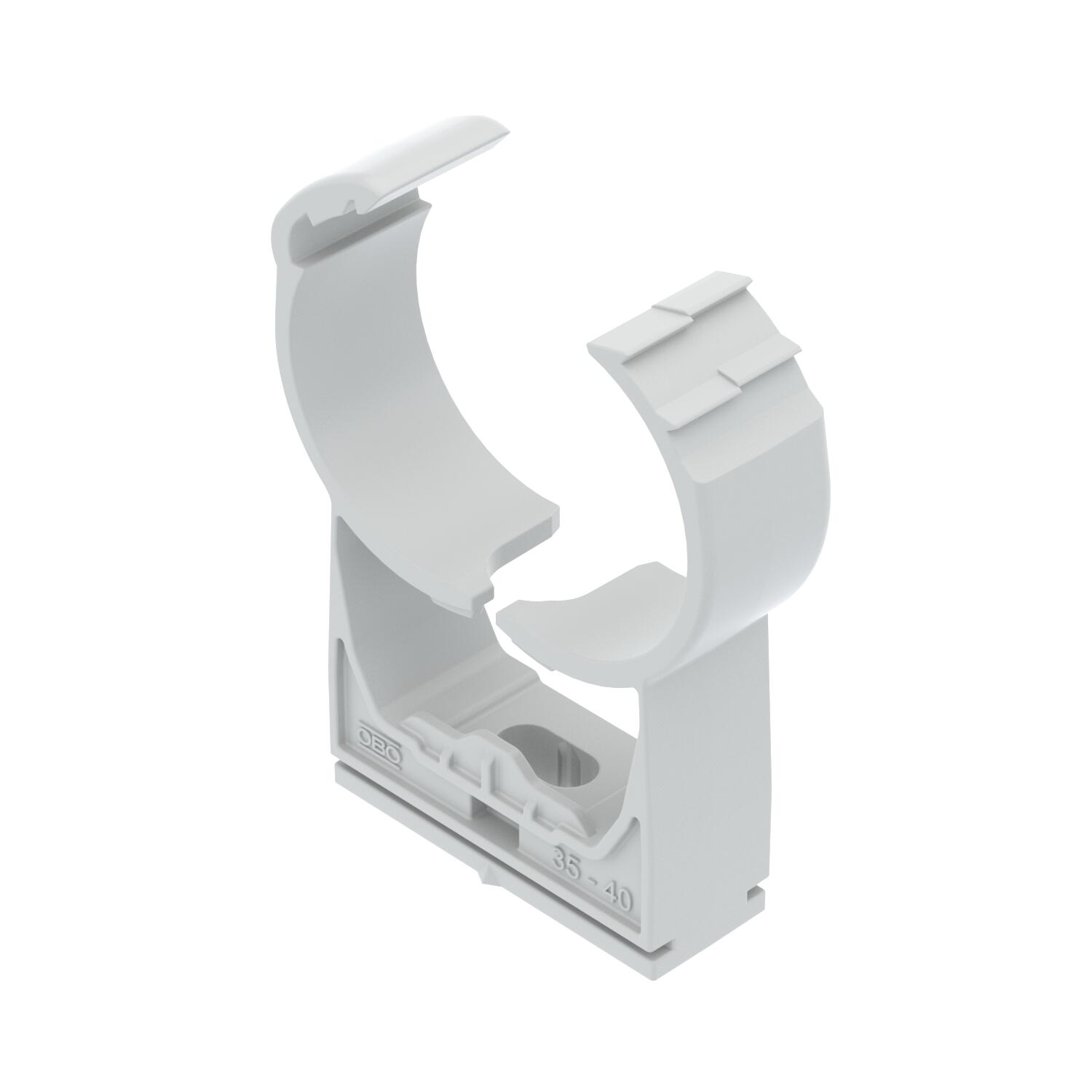 Product descriptionHighly stressable clip for accepting plastic or metal electrical and sanitary pipes as well as the electrical installation pipe Quick pipe. Universal fastening options on walls, ceilings and steel constructions, both indoors and outdoors. Flexible clamping range of several millimetres. Toolless pipe mounting. Connectable to each other to Ø 32 mm, also with the OBO Quick or Multi Quick clip. For variable distances and clip quantity mountable on a profile rail.