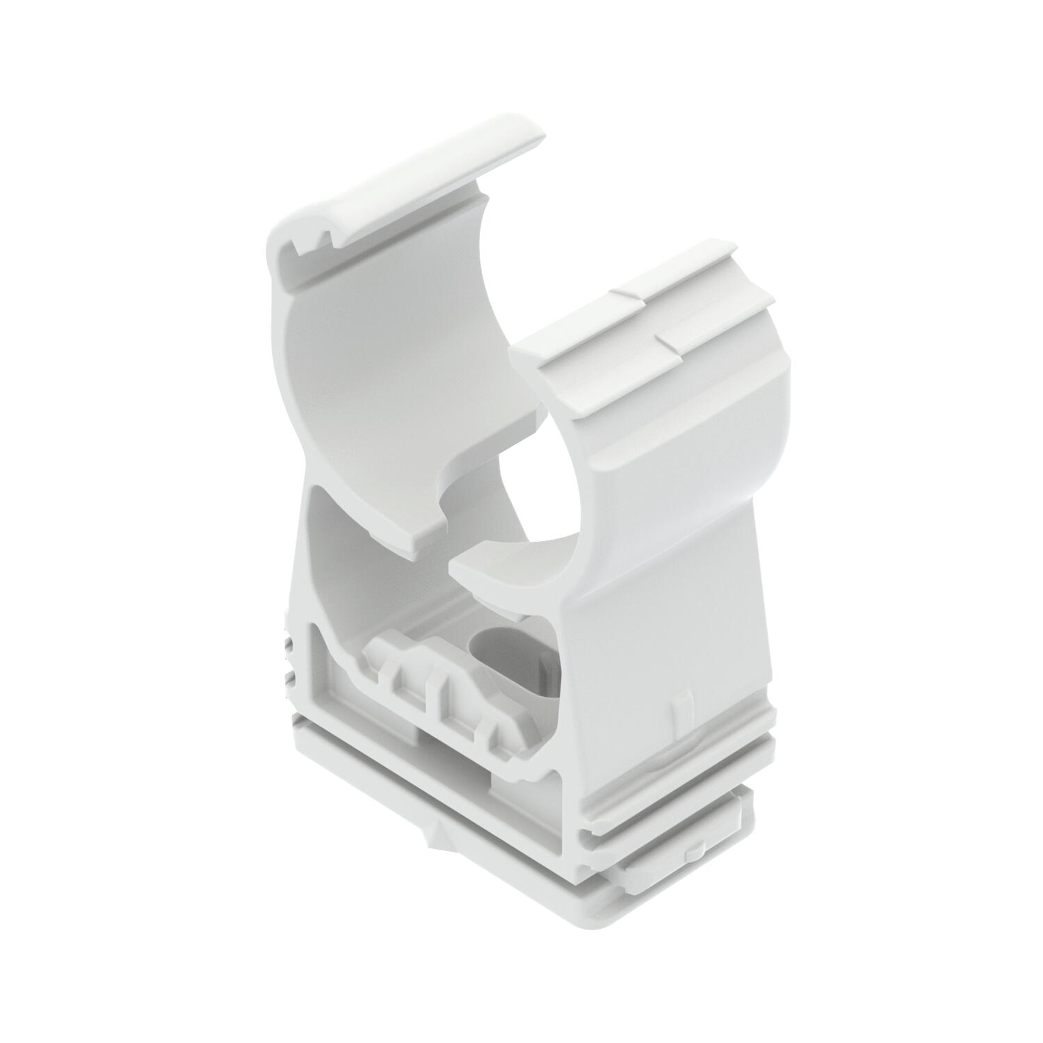 Product descriptionHighly stressable clip for accepting plastic or metal electrical and sanitary pipes as well as the electrical installation pipe Quick pipe. Universal fastening options on walls, ceilings and steel constructions, both indoors and outdoors. Flexible clamping range of several millimetres. Toolless pipe mounting. Connectable to each other to Ø 32 mm, also with the OBO Quick or Multi Quick clip. For variable distances and clip quantity mountable on a profile rail.