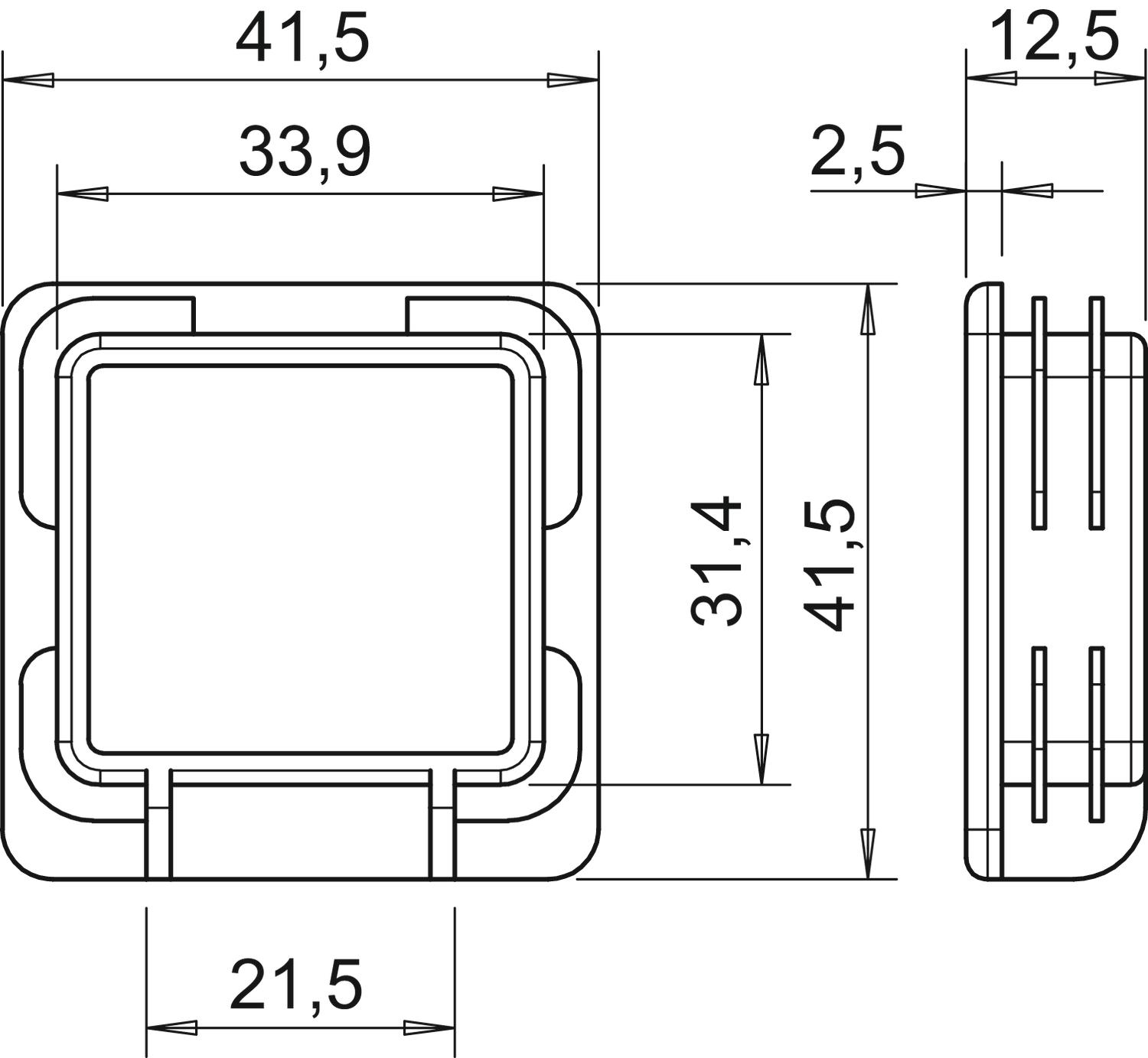 CO2 Footprint (GWP) Cradle-to-Gate 0,015 kg CO2e / 1 Piece Colour Pastel orange; RAL 2003 Dimension 41x41mm Height 41,5 mm Length 12,5 mm Material Polyethylene Suitable for profile shapes C profile Version for End cap Width 41,5 mm - All types