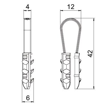Breaking load vertically perforated brick 300 N Breaking load concrete 400 N Diameter 6 mm Dimension 41,0x14,0x7,5 Drill hole depth 35 mm Drill hole diameter, max. 6 mm Drill hole diameter, min. 6 mm Halogen-free yes Length 30 mm Material Polyamide Min. mounting temperature 5 °C Mounting temperature, max. 60 °C Mounting type, anchor, tie Pre-mounting Safe working load concrete 175 N Safe working load vertically perforated brick 130 N Suitable for fastening with cable ties no Suitable for hexagonal wood screw no Suitable for material Calcareous sandstone, Porous concrete, Concrete, Gas concrete, Full brick, Hollow brick Temperature resistance, min. -20 °C Temperature-resistance, max. 60 °C Version for Push-fit anchor With bolts no - All types
