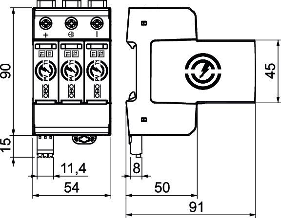 Arrester surge current (8/20 µs) [total] 50 kA Conductor cross-section, flexible (fine-wire), max. 4 AWG Conductor cross-section, flexible (fine-wire), max. 25 mm² Conductor cross-section, flexible (fine-wire), min. 1,5 mm² Conductor cross-section, flexible (fine-wire), min. 16 AWG Conductor cross-section, rigid (single-wire/multiwire), max. 35 mm² Conductor cross-section, rigid (single-wire/multiwire), max. 2 AWG Conductor cross-section, rigid (single-wire/multiwire), min. 16 AWG Conductor cross-section, rigid (single-wire/multiwire), min. 1,5 mm² Connection cross-section, FM terminals, max. 16 AWG Connection cross-section, FM terminals, max. 1,5 mm² Connection cross-section, FM terminals, min. 23 AWG Connection cross-section, FM terminals, min. 0,25 mm² DC network form yes Dimension 1100V DC FM contacts Changeover Height 110 mm Humidity, max. 95 % Humidity, min. 5 % Installation type DIN rail 35 mm Integrated back-up fuse no IT network form no Length 91 mm Lightning protection zone LPZ 0→2 Lightning surge current (10/350 μs) 6,25 kA Lightning surge current (10/350) 12,5 kA Max. mains-side overcurrent protection 160 Max. PV voltage 1100 V Maximum back-up fuse 160 A Maximum continuous voltage DC 1100 V Maximum discharge current (8/20 μs) 40 kA Network form DC Nominal discharge current (8/20 µs) 30 kA Nominal discharge current (8/20 µs) [L-N] 30 kA OBO_Nominal load current (input/output terminal) 50 A Other network form no Permitted temperature range, max. 85 °C Permitted temperature range, min. -40 °C Pole number 3 Pole version Other Protection rating IP20 Remote signalling yes Response time <25 ns Signalling on device Visual SPD to EN 61643-11 Type 1+2 SPD to IEC 61643-1 Class I+II Suitable for outdoor use no Switching power AC 250 V; 1,0 A / 125 V; 1,0 A Switching power DC 48 V; 0,5 A / 24 V; 0,5 A / 12 V; 0,5 A TN network form no TN-C network form no TN-C-S network form no TN-S network form no Torque 4,5 Nm TT network form no Version for 3-pole for PV systems Width 54 mm - All types