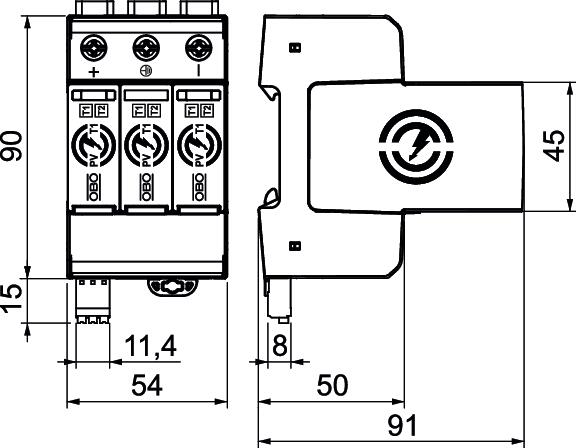 Arrester surge current (8/20 µs) [total] 60 kA Conductor cross-section, flexible (fine-wire), max. 25 mm² Conductor cross-section, flexible (fine-wire), max. 4 AWG Conductor cross-section, flexible (fine-wire), min. 1,5 mm² Conductor cross-section, flexible (fine-wire), min. 16 AWG Conductor cross-section, rigid (single-wire/multiwire), max. 35 mm² Conductor cross-section, rigid (single-wire/multiwire), max. 2 AWG Conductor cross-section, rigid (single-wire/multiwire), min. 1,5 mm² Conductor cross-section, rigid (single-wire/multiwire), min. 16 AWG Connection cross-section, FM terminals, max. 16 AWG Connection cross-section, FM terminals, max. 1,5 mm² Connection cross-section, FM terminals, min. 0,25 mm² Connection cross-section, FM terminals, min. 23 AWG DC network form yes Dimension 1500V DC FM contacts Changeover Height 110 mm Humidity, max. 95 % Humidity, min. 5 % Installation type DIN rail 35 mm Integrated back-up fuse no IT network form no Length 91 mm Lightning protection zone LPZ 0→2 Lightning surge current (10/350 μs) 6,25 kA Lightning surge current (10/350) 12,5 kA Max. PV voltage 1500 V Maximum continuous voltage DC 1500 V Maximum discharge current (8/20 μs) 60 kA Network form DC Nominal discharge current (8/20 µs) 30 kA Other network form no Permitted temperature range, max. 85 °C Permitted temperature range, min. -40 °C Pole number 3 Pole version 3 Protection rating IP20 Remote signalling yes Response time <25 ns Signalling on device Visual SPD to EN 61643-11 Type 1+2 SPD to IEC 61643-1 Class I+II Suitable for outdoor use no Switching power AC 250 V; 1,0 A / 125 V; 1,0 A Switching power DC 48 V; 0,5 A / 24 V; 0,5 A / 12 V; 0,5 A TN network form no TN-C network form no TN-C-S network form no TN-S network form no Torque 4,5 Nm TT network form no Version for 3-pole for PV systems Width 54 mm - All types