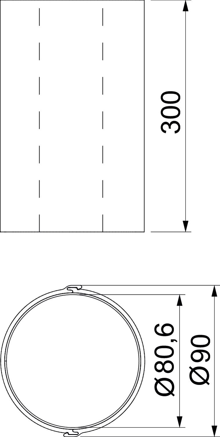 Accessories required no Colour Grey Diameter 90 mm Dimension 81x300mm Dimension B 90 mm Dimension d min. 80,6 mm Dimension L 300 mm Fire protection version Assembly insulation For opening, max. 100 mm For opening, min. 100 mm Length 300 mm Material Polyvinylchloride Shape Round - All types