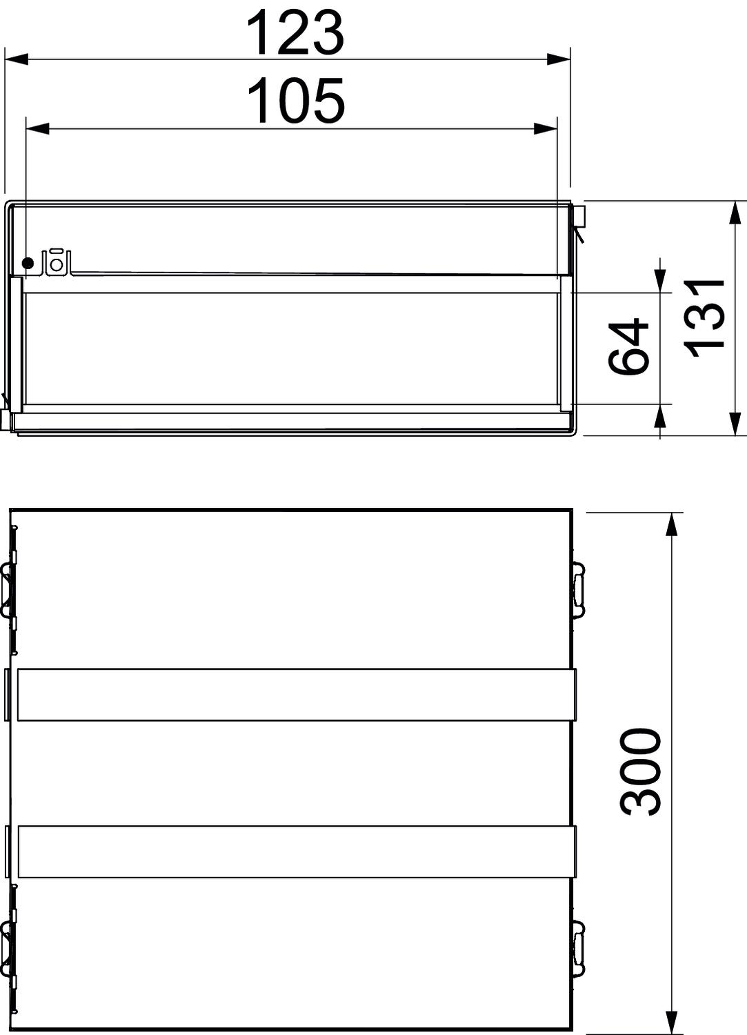 Accessories required yes Colour stainless steel Dimension 300x123x130 Dimension d 105 mm Dimension d min. 123 mm Fire protection version Box body Height 131 mm Internal height 64 mm Internal width 105 mm Length 300 mm Material Stainless steel 1.4301 Shape Rectangular Surface Bright, treated Width 123 mm - All types