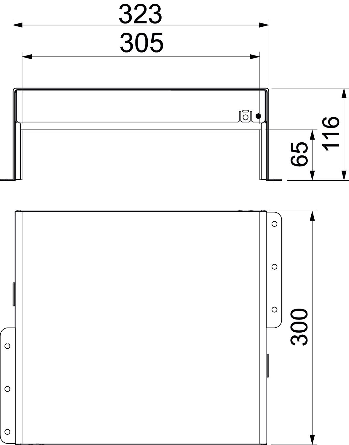 Accessories required yes Colour stainless steel Dimension 300x323x116 Dimension d 305 mm Dimension d min. 323 mm Fire protection version Box body Height 116 mm Internal height 65 mm Internal width 305 mm Length 300 mm Material Stainless steel 1.4301 Shape Rectangular Surface Bright, treated Width 323 mm - All types