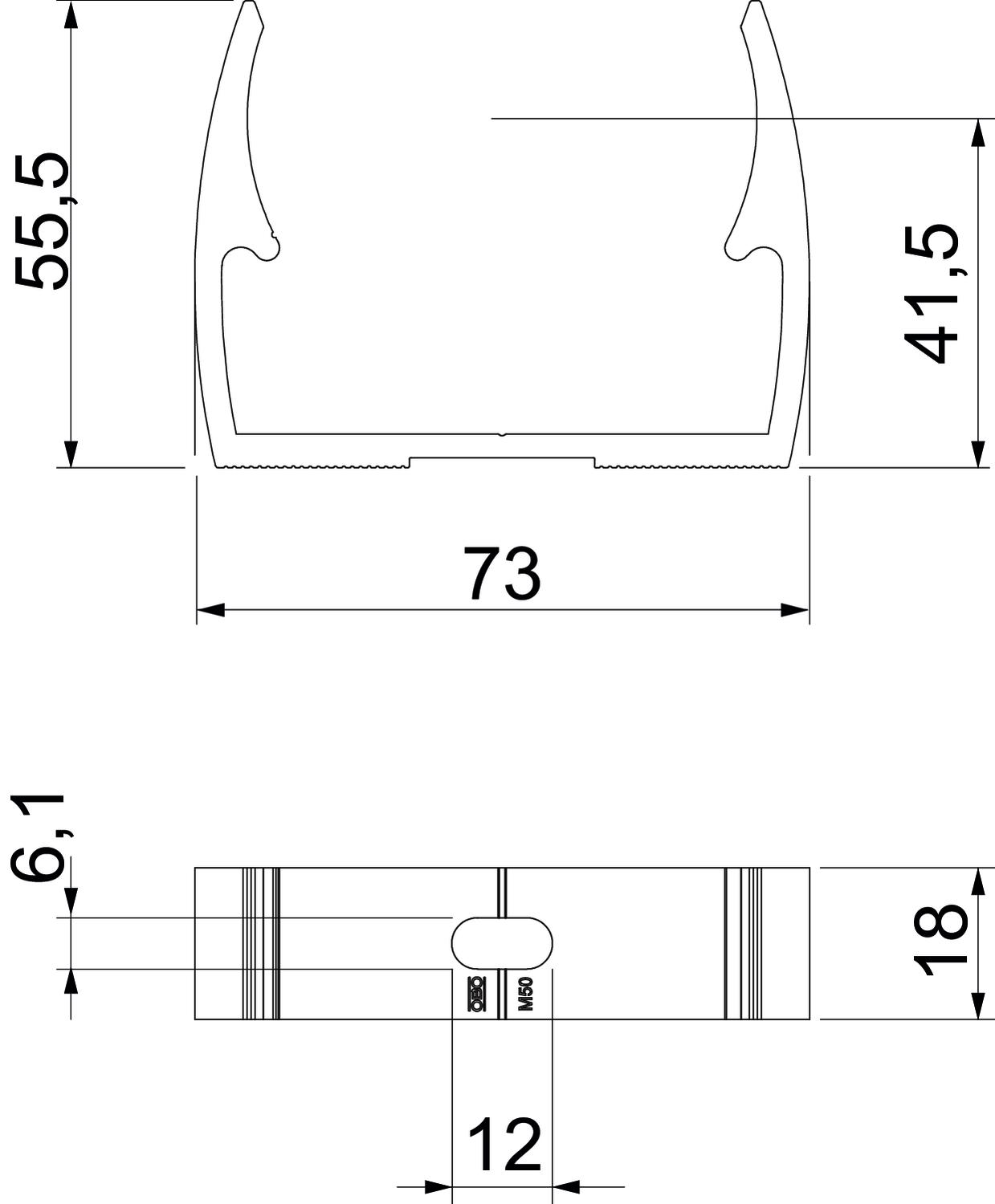 Clamping range D, max. 63 mm Clamping range D, min. 63 mm Closed no CO2 Footprint (GWP) Cradle-to-Gate 0,5461 kg CO2e / 1 Piece Dimension M63 Dimension A 73 mm Dimension B 18 mm Dimension E 6,1 mm Dimension F 12 mm Dimension H 55,5 mm Dimension h 41,5 mm Expandable no Fastening type Screw hole Halogen-free no Material Aluminium Nominal size 63 Number of cables/pipes 1 Pull-out value 70 N UV-resistant yes With inlay no - All types