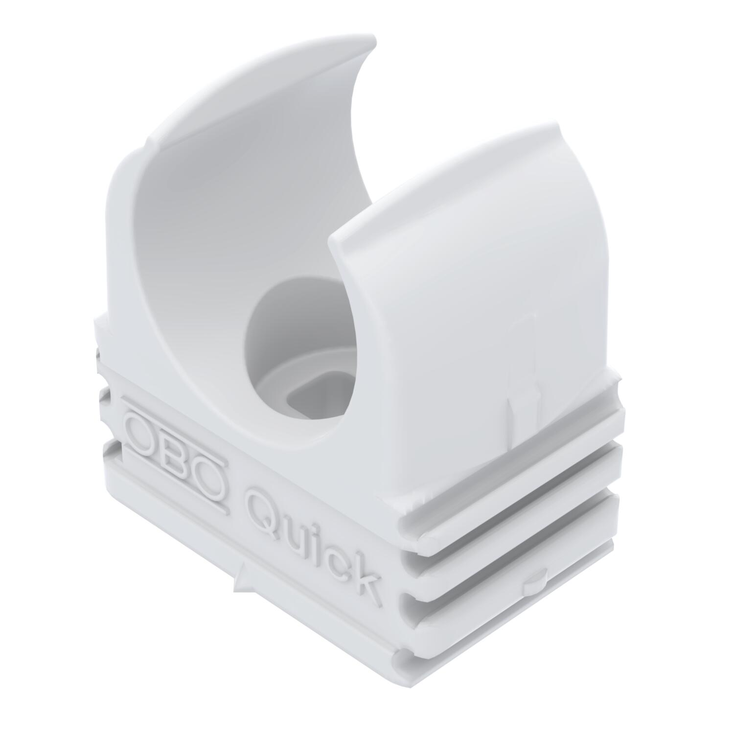 Product descriptionFlame-resistant, flush-mounted clip to accept metric steel armoured pipes and heavy-duty insulating pipes, as well as Quick-Pipe® electrical installation pipes. Universal fastening options on walls and ceilings, both in indoor and protected outdoor areas. With slot for side alignment during mounting with wood screw or knock-in anchor. Toolless pipe mounting. Can also be arranged with OBO Multi-Quick or proQuick clip. M16 - M32 size can be screwed onto M6 thread. Recommended fastening spacing 50–60 cm, for max. extraction values F at a room temperature of 20 °C, see the table.