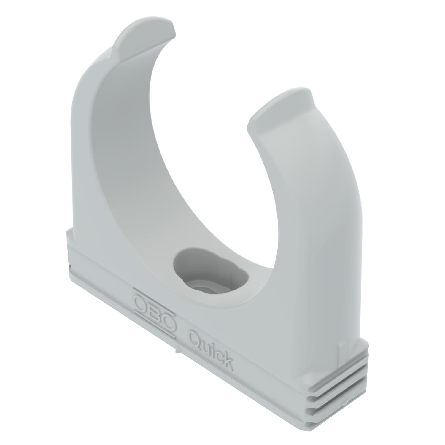 Product descriptionFlush-mounted clip to accept metric steel armoured pipes and heavy-duty insulating pipes, as well as Quick-Pipe® electrical installation pipes. Universal fastening options on walls and ceilings, both in indoor and protected outdoor areas. With slot for side alignment during mounting with wood screw or knock-in anchor. Toolless pipe mounting. Can also be arranged with OBO Multi-Quick or proQuick clip. M16 - M32 size can be screwed onto M6 thread. Recommended fastening spacing 50–60 cm, for max. extraction values F at a room temperature of 20 °C, see the table.