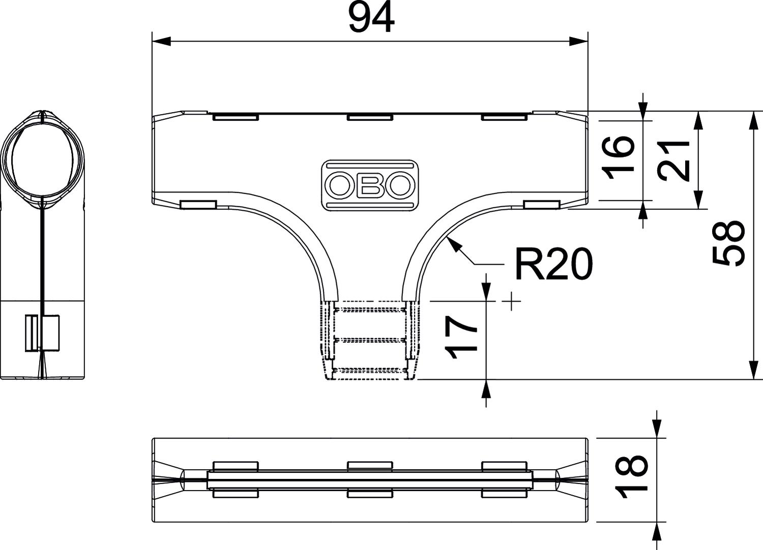 Brushed surface no CO2 Footprint (GWP) Cradle-to-Gate 0,0511 kg CO2e / 1 Piece Colour Light grey; RAL 7035 Dimension M16 Dimension B 21 mm Dimension B2 94 mm Dimension d 16 mm Dimension L 58 mm Dimension L1 17 mm Dimension R 20 mm Halogen-free yes Material Polypropylene Permitted temperature range, max. 60 °C Polished surface no Shape T piece Size M16 Version for Connector With sleeve no - All types