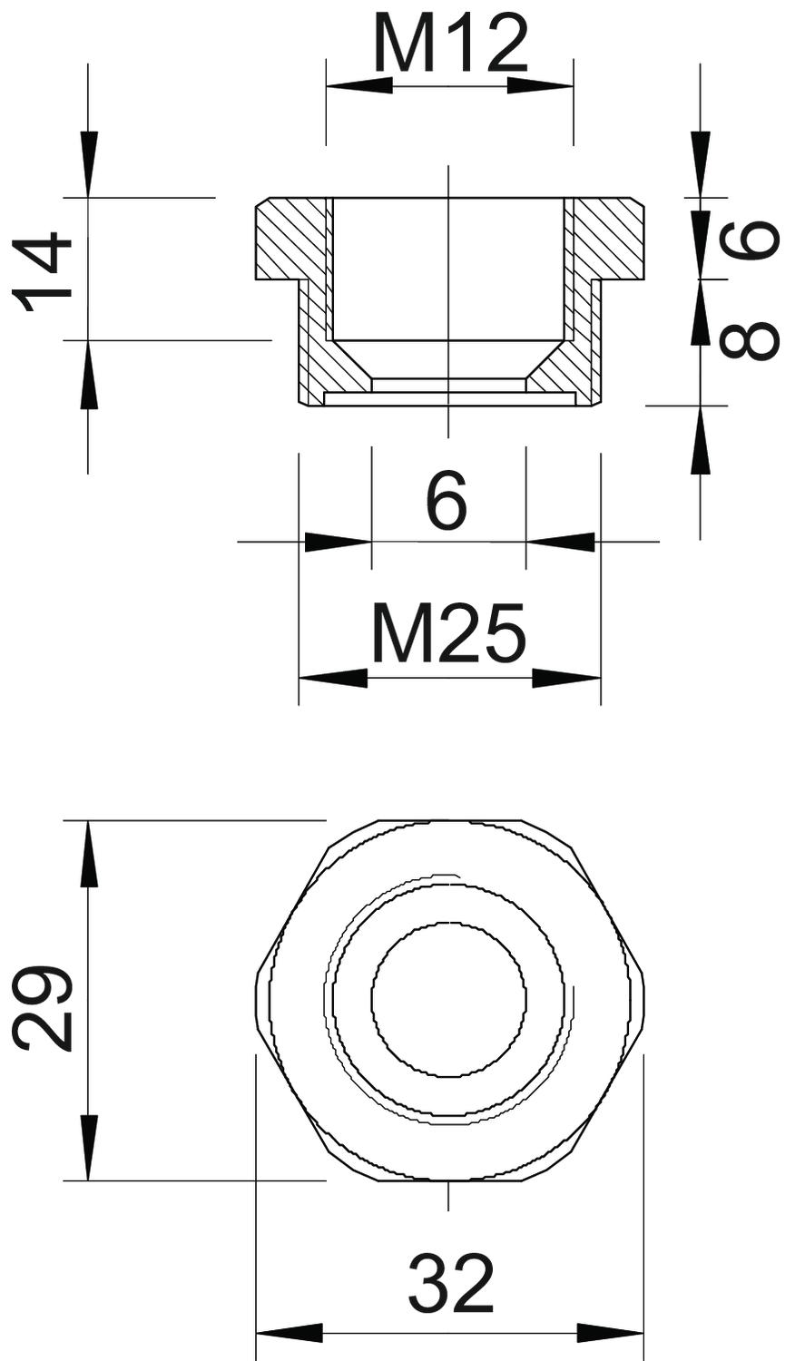 CO2 Footprint (GWP) Cradle-to-Gate 0,033 kg CO2e / 1 Piece Colour Light grey; RAL 7035 Dimension M25-M12 Dimension E 32 mm Dimension L 14 mm Dimension L1 8 mm Dimension L2 6 mm Dimension L3 14 mm explosion-proof no Halogen-free yes Material Polyamide Nickel-plated no Thread dimension, metric, external 25 Thread dimension, metric, internal 12 Thread length 8 mm Thread type: External thread Metric Thread type: Internal thread Metric WAF 29 - All types