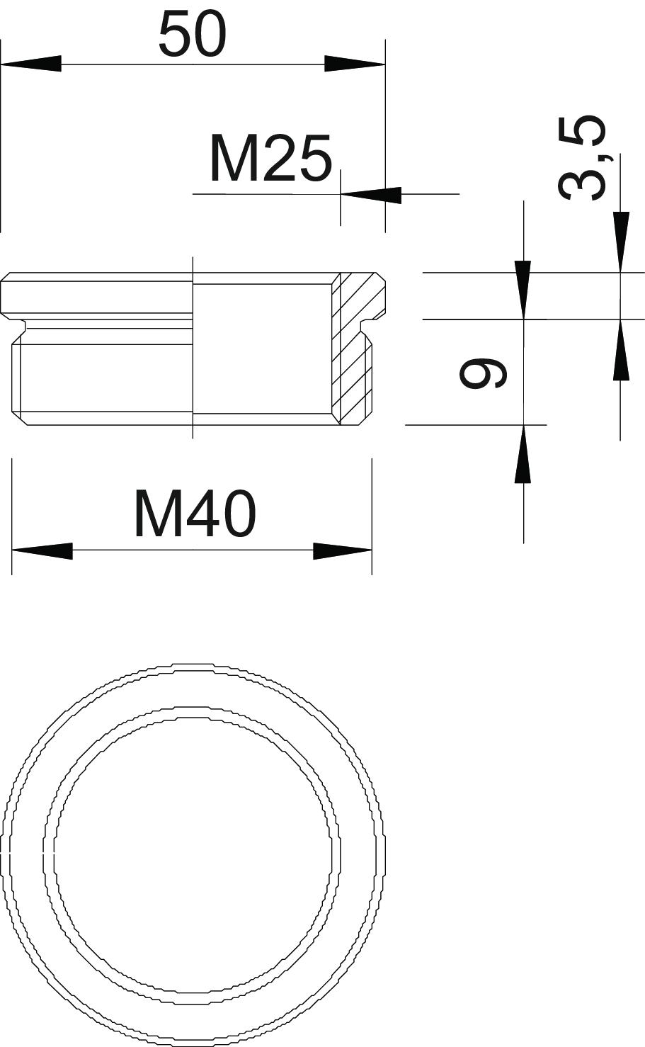 CO2 Footprint (GWP) Cradle-to-Gate 0,2403 kg CO2e / 1 Piece Dimension M40-M25 Dimension D 50 mm Dimension L1 9 mm Dimension L2 3,5 mm explosion-proof no Material Brass Nickel-plated yes Surface Nickel-plated Thread dimension, metric, external 40 Thread dimension, metric, internal 25 Thread length 6 mm Thread type: External thread Metric Thread type: Internal thread Metric - All types
