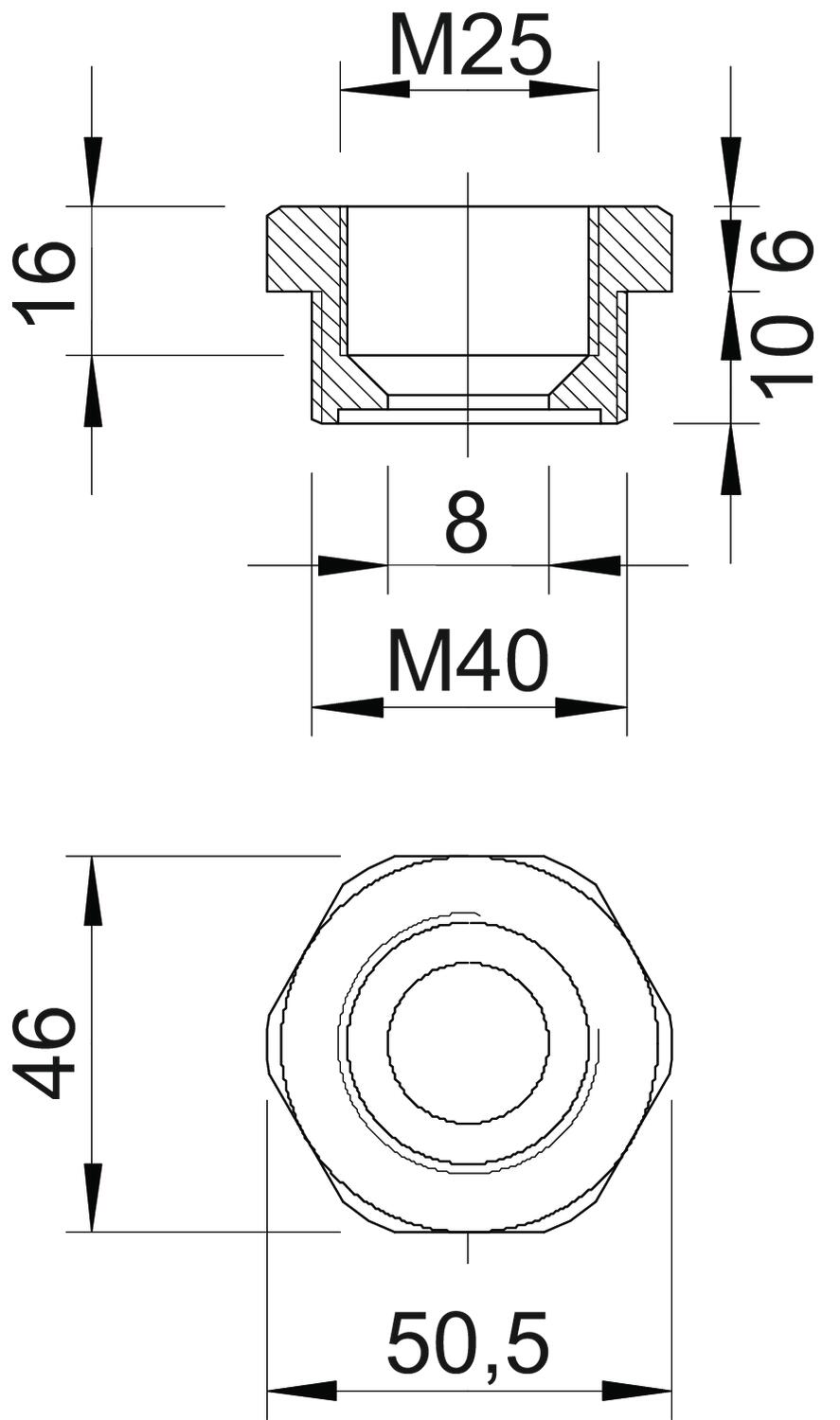 Product descriptionReduction with metric internal and external thread for mounting plastic cable glands on enclosures. Protection class IP54 without additional connecting seal. Protection class up to IP68 possible with additional connecting seal, e.g. O-ring or flat sealing ring.