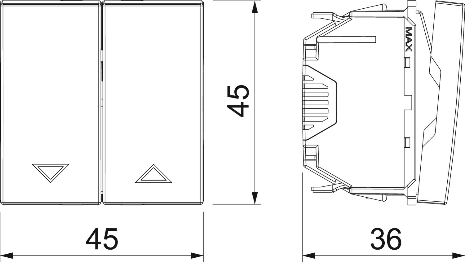 Product descriptionRoller blind button with electrical locking, 1-pin, 10 A, 250 V~, with screwless terminals.