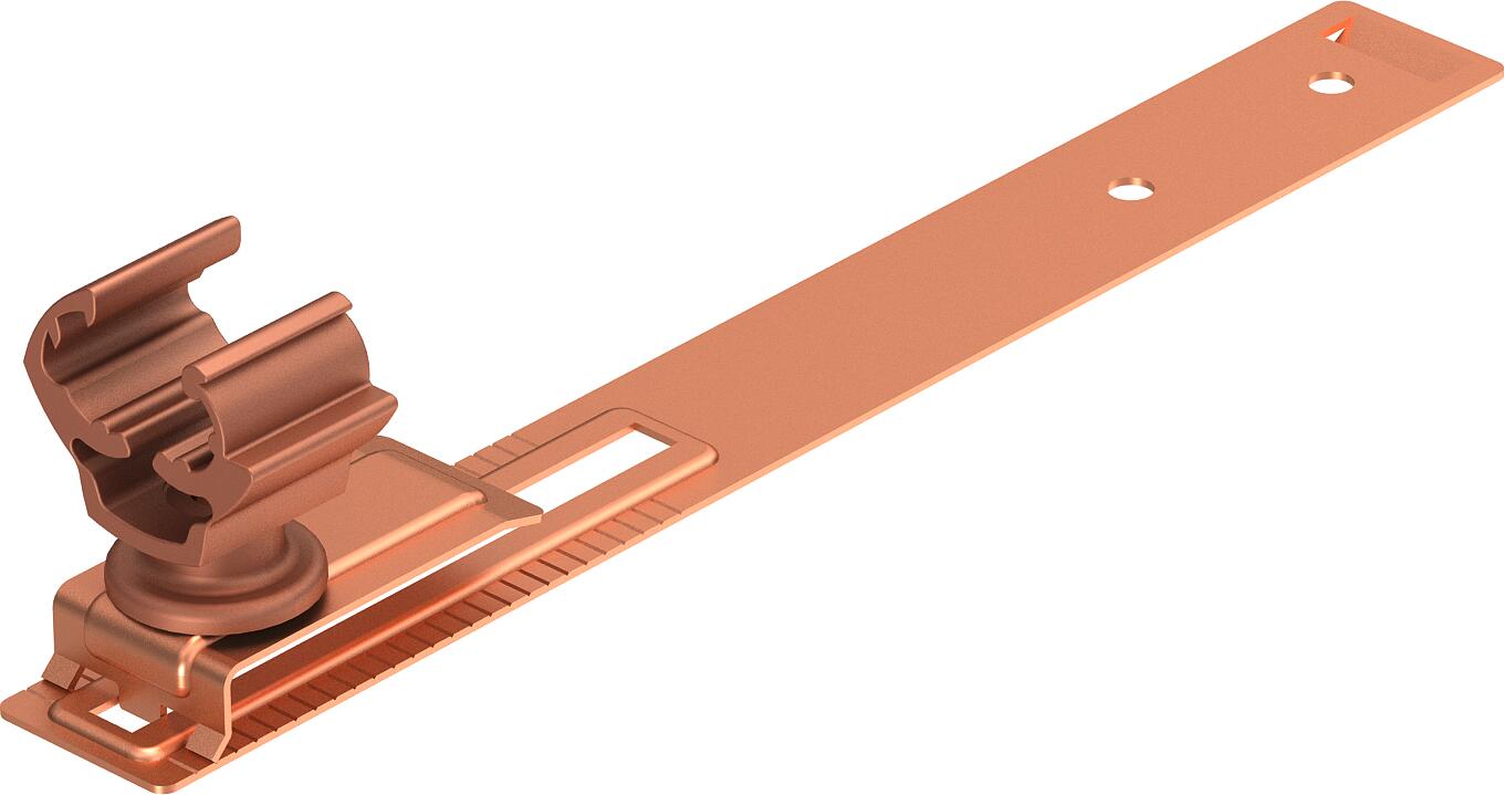 Application Roof surface CO2 Footprint (GWP) Cradle-to-Gate 0,2634 kg CO2e / 1 Piece Conductor diameter, max. 10 Conductor diameter, min. 8 Conductor fastening type With clamp clip Dimension 210mm Fit Rd 8-10 mm Length 212 mm Material Copper Mounting height 38 mm Mounting type Screw-on - All types