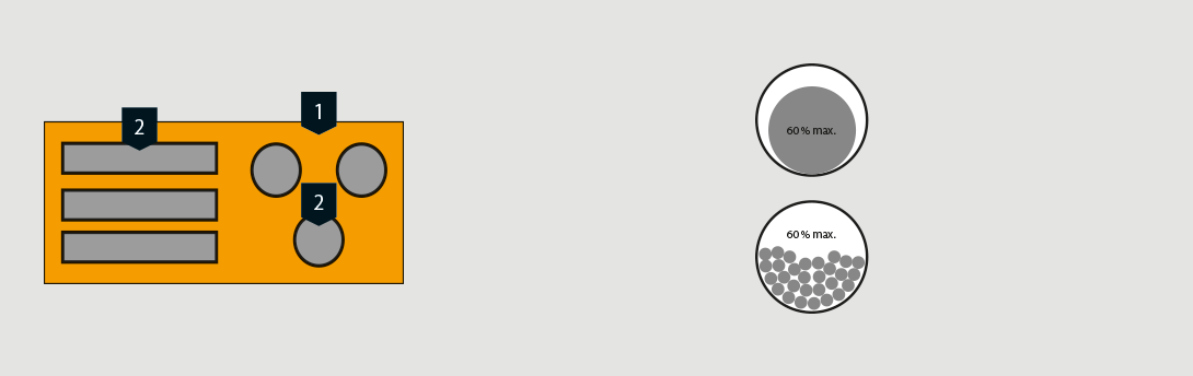 Classic insulation is created according to the so-called 60% assignment rule. This means, from the component opening through which the installations run, a maximum of 60% of the area may be assigned with cables, support systems, pipes, etc. The remaining area, the remaining 40%, must be filled with fire protection material which is "active" in case of fire or be closed off. In this case, "active" does not mean that the material must react chemically. It must only ensure that the heat transmission via the media and the transmission of fire and smoke are prevented. This can take place through chemical reactions, but also through good acceptance of the heat energy and the resulting cooling effect. Some systems can be "fully" assigned. However, they must be tested and approved for this application.