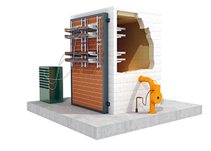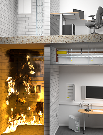 The testing of the insulation takes place in a special tests, in which the sample installations on test are heated up according to a standard temperature-time curve. This curve is internationally standardised according to ISO 834-1 and used around the world for fire tests. It forms the so-called "flash-over", which is the most critical phase of a fire. After the smoldering fire phase, all the combustible gases located in the fire chamber ignite suddenly, meaning that the temperature rises very quickly. This installed installation must withstand this full fire.