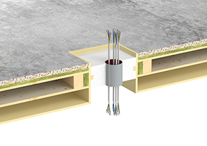 Insulation must also be installed in system floors - cavity floors and raised floors. If underfloor ducts run beneath walls with a fire resistance period, insulation measures must be taken. Screed-covered underfloor ducts are insulated starting from the closest connection sockets, as the wall opening can no longer be reached directly due to the poured screed. The distances between the connection sockets are irrelevant. Of importance is the smoke gas-tight and fireproof closure, in order to prevent the spread of fire.
