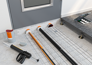 If raised floors abut onto, for example, escape routes with poured screed, then there must be at least partial insulation beneath the smoke protection door or fire protection door. In most cases, the insulation can only be worked from one side. In these cases, the PYROCOMB Intube system, cable insulation with a half shell, can be used.